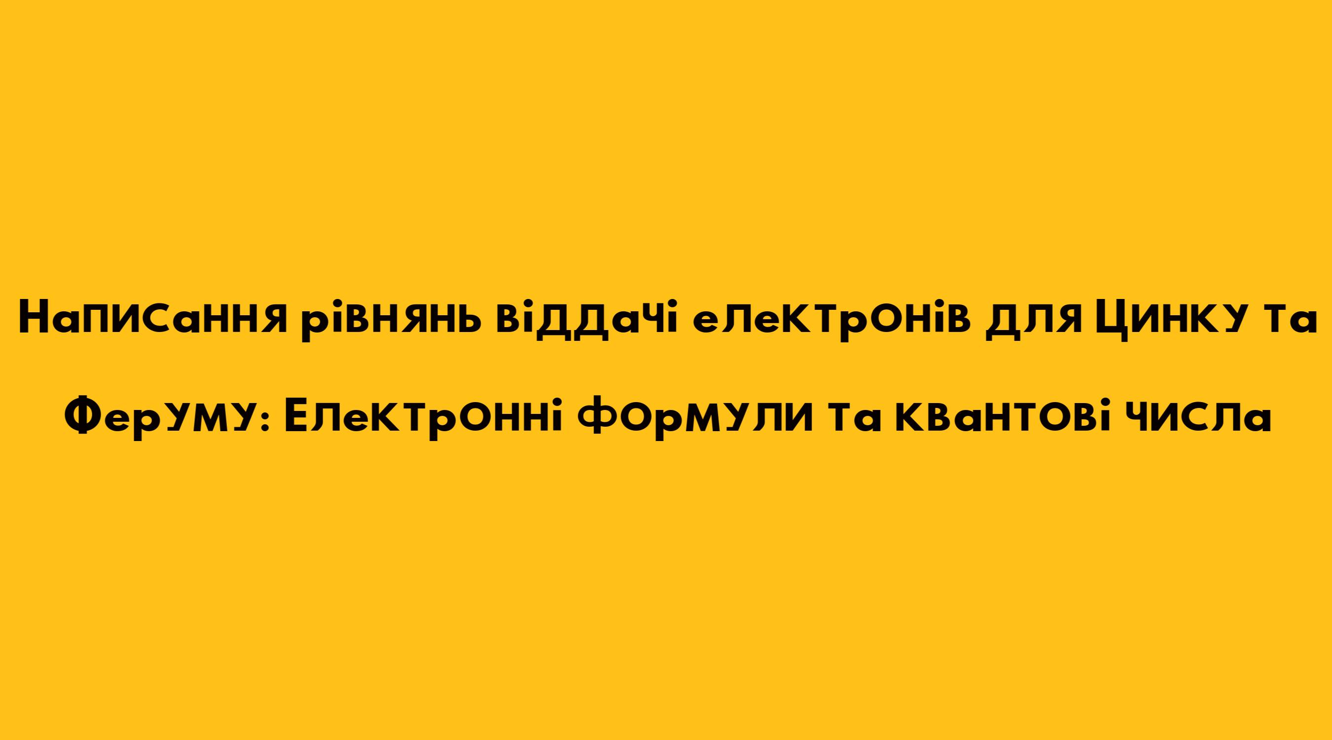 Написання Рівнянь Віддачі Електронів Для Цинку Та Феруму Електронні Формули Та Квантові Числа